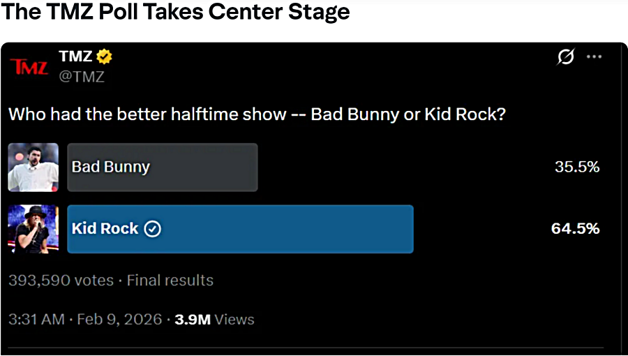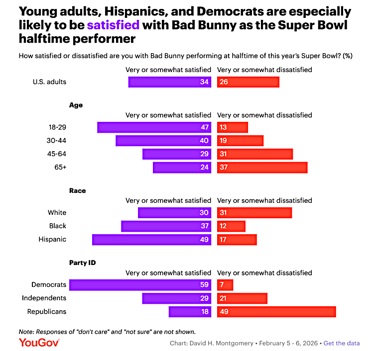 Right or wrong, but more importantly, factually, Bad Bunny performing a segment of America’s most popular sport, a sport created in America by Americans, a sport traditionally played only in America, in a language that most American Whites can’t understand, is a fear or anxiety sign to many American Whites of potential future cultural rejection, potential future cultural retaliation, or potential future cultural replacement by a new definite future cultural majority.