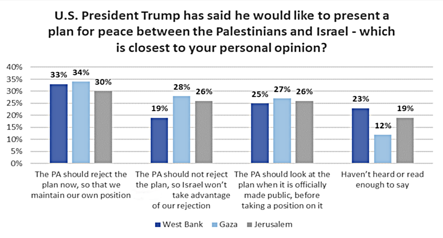 A poll by the Palestine Center for Public Opinion, taken June 27-July 19 indicates that the majority of Palestinians in the West Bank and Gaza oppose their leaderships’ preemptive rejection of the Trump administration’s peace plan—despite widespread popular disapproval of President Trump.