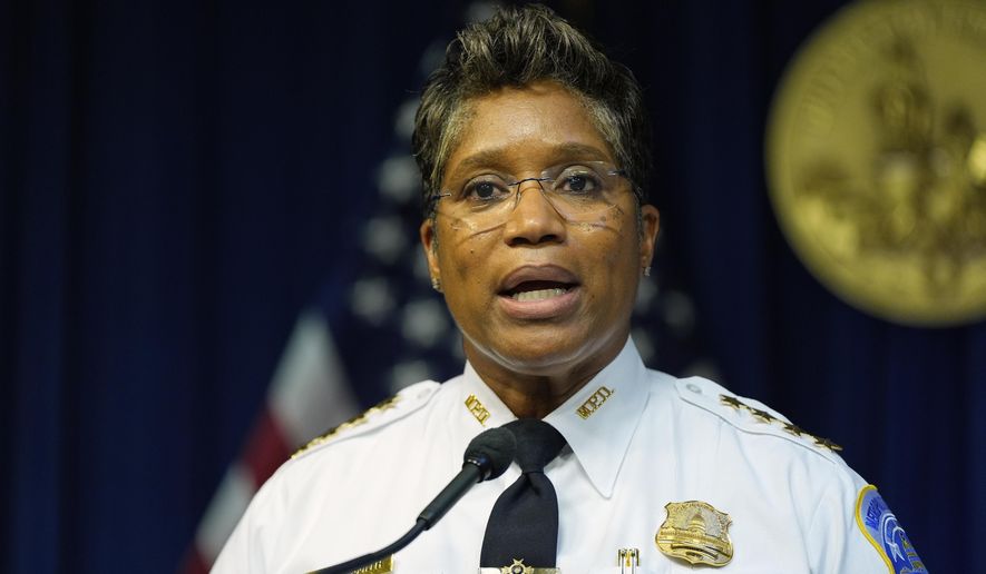 D.C. Police Chief Pamela A. Smith said the extra patrols of FBI, Drug Enforcement Administration and Homeland Security Department agents initiated by President Trump’s federal takeover this week have helped authorities arrest criminals who would otherwise remain on the loose. (AP Photo/Julia Demaree Nikhinson)