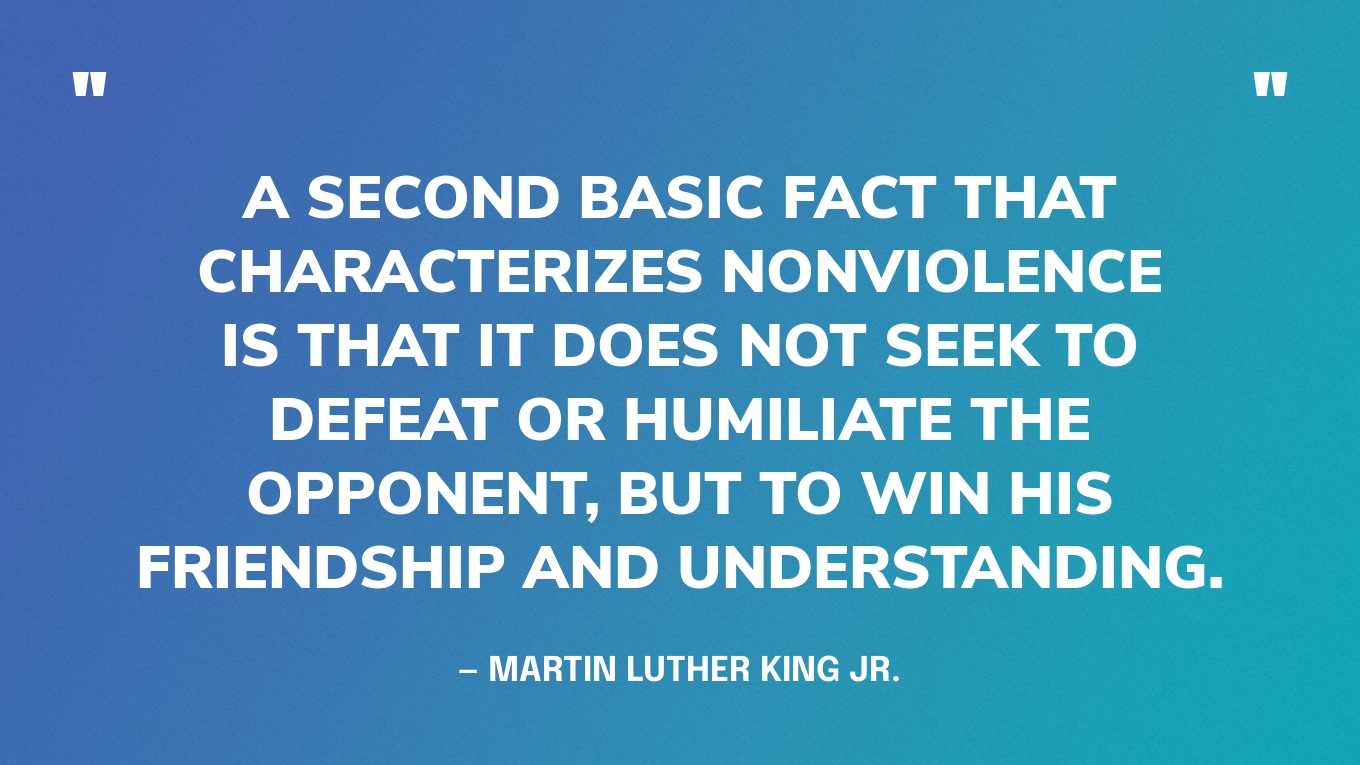 The words of Kingian Nonviolence state: “Nonviolence seeks friendship and understanding with the opponent. Nonviolence does not seek to defeat the opponent. Nonviolence is directed against evil systems, forces, oppressive policies, unjust acts, but not against persons. Through reasoned compromise, both sides resolve the injustice with a plan of action. Each act of reconciliation is one step closer to the ‘Beloved Community”.