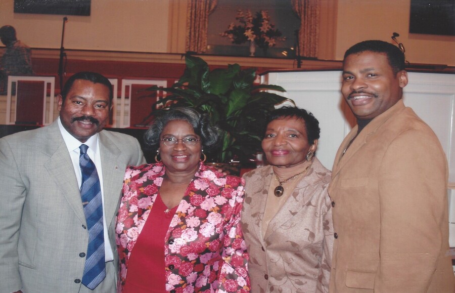 (From left to right) Ralph David Abernathy III, Dr. Juanita Jones Abernathy (mother of Ralph), Dr. Christine King Farris, Isaac Newton Farris Jr.