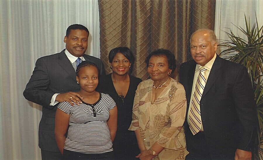 Immediate family of Isaac Newton Farris Jr. (from left to right) INF JR., his niece Farris Christine Watkins, his sister Dr. Angela Farris Watkins, his mother Dr. Christine King Farris, and father Isaac Newton Farris Sr.