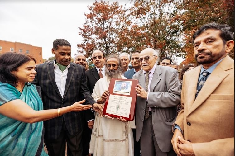 The Gandhi Foundation at the Martin Luther King, Jr. Center for Non violent Social Change, honored global humanitarian leader and spiritual master Gurudev Sri Sri Ravi Shankar with the Gandhi Peace Pilgrim award, recognizing his commitment to peace and non-violence. Gurudev was welcomed by Dr. Isaac Newton Farris, Jr., Senior Fellow of the MLK Center, and the nephew of Dr. Martin Luther King, Jr. nephew; and Hon. Consul General of India, Smt. Swati Kulkarni.